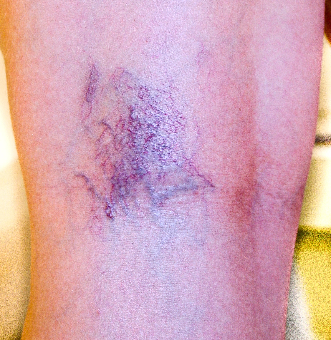 La peau est constituée du derme et de l'épiderme . Elle a une épaisseur d'environ 1mm. Dans le derme, cheminent des veinules invisibles à l'état naturel ,car d'un diamètre ultra fin de moins d’un dixième de millimètre. Lorsque ces veinules se dilatent au delà de 0,1mm, elles deviennent visibles à l’oeil nu à travers la peau et forment ce que l'on appelle des varicosités ou télangiectasies.